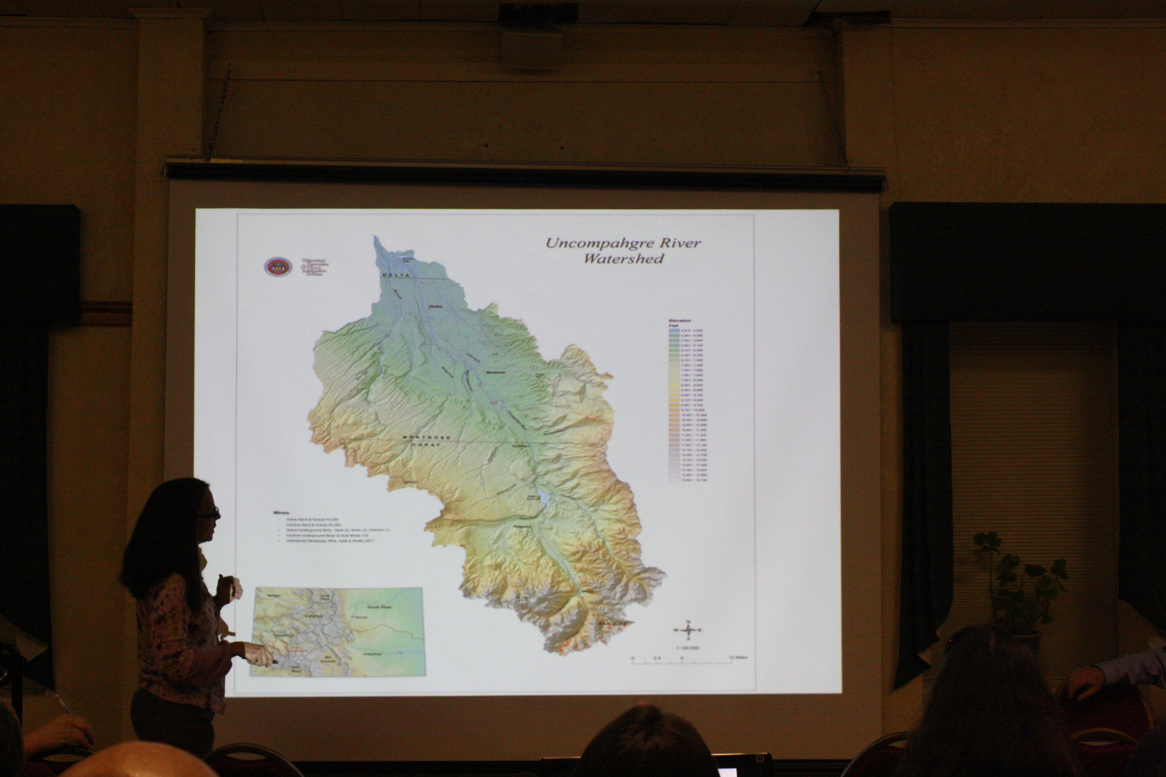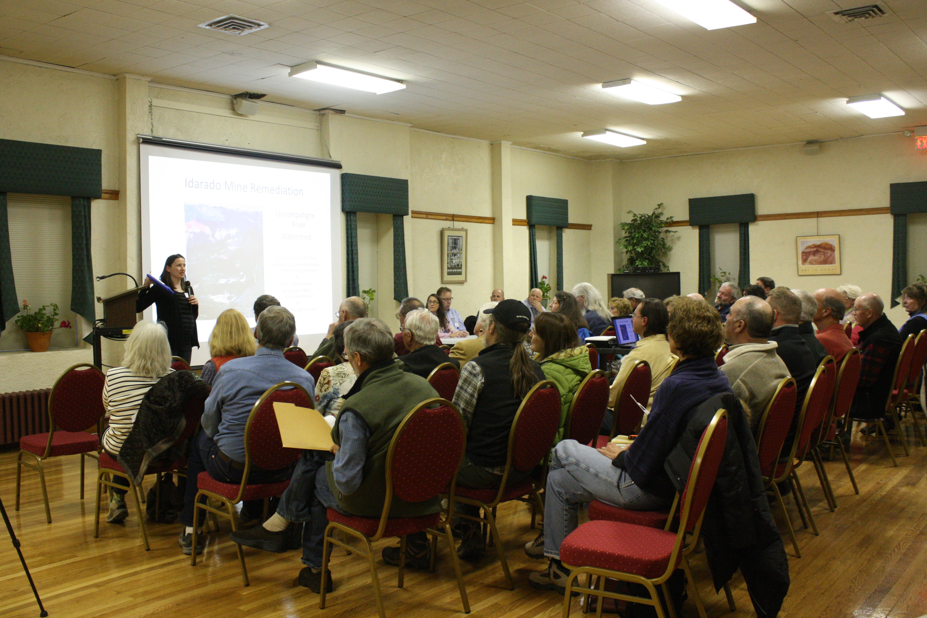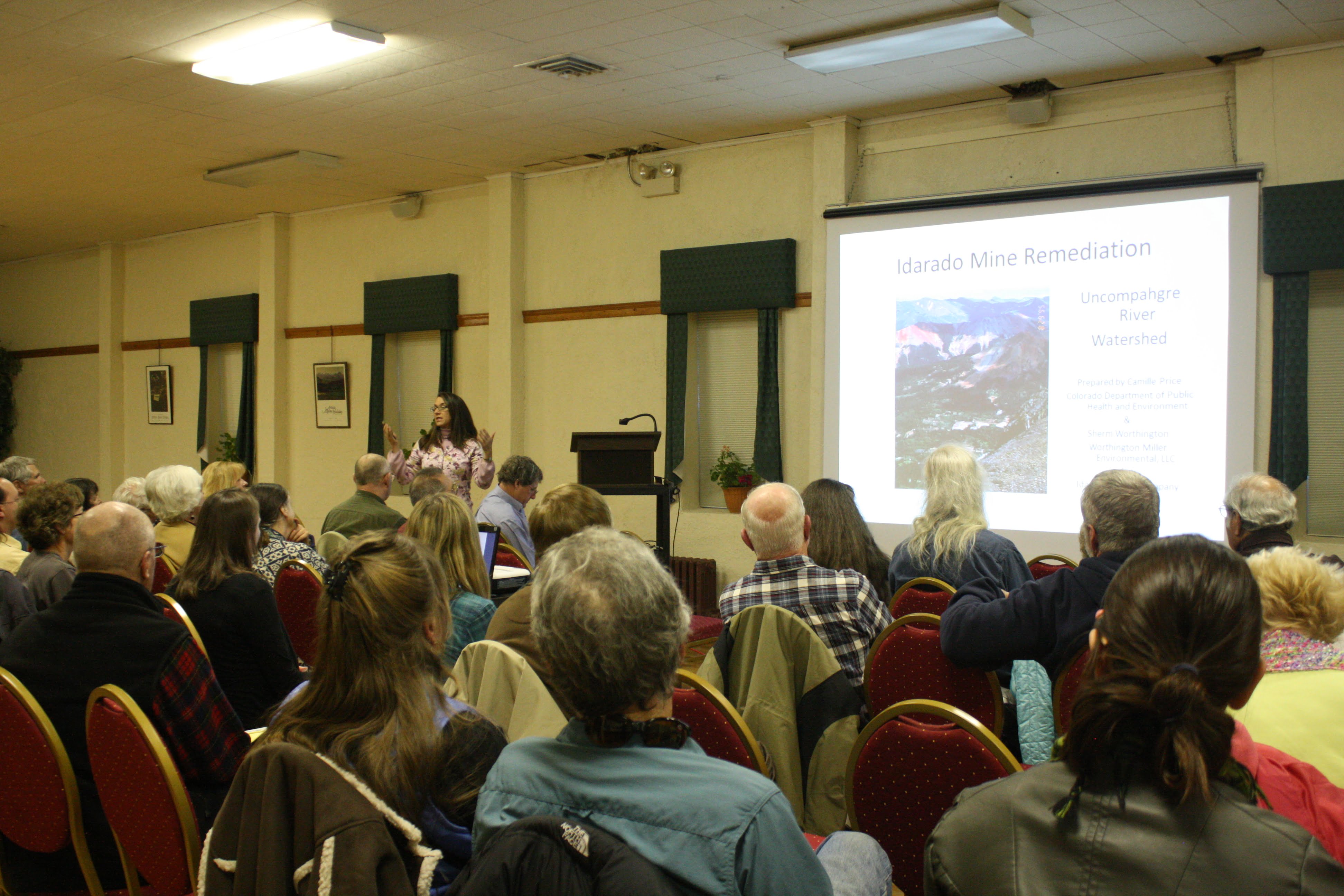 Thanks to Camille Price from the Colorado Division of Mining Reclamation and Safety, speakers from a variety of involved parties came to the Ouray Community Center to give a public update on the Idarado Mine Remediation Project.