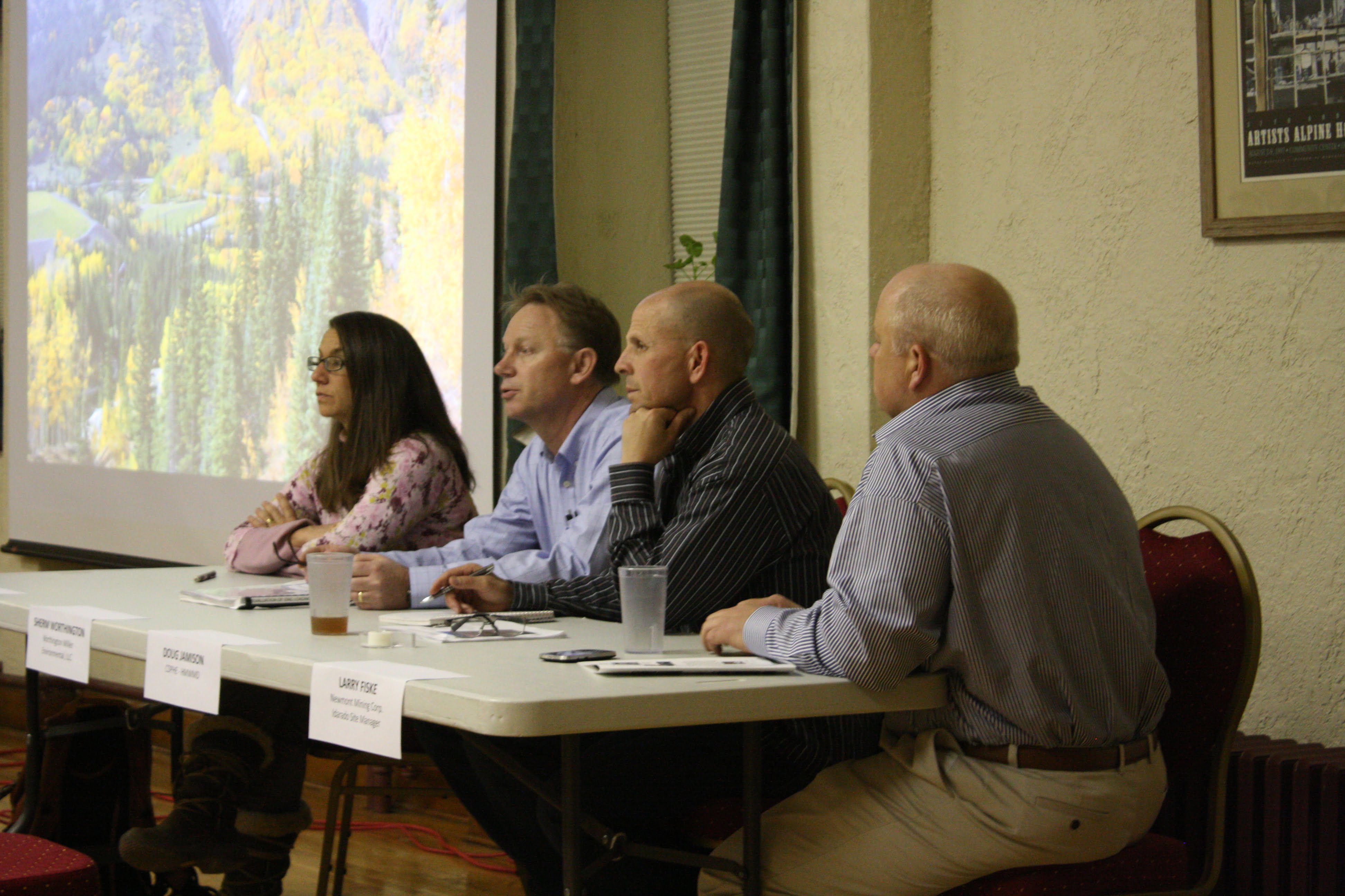 Larry Fiske of Newmont Mining Company, Sherm Worthington of Worthington-Miller Environmental LLC, and Doug Jamison of the Colorado Department of Public Health and Environment, along with Mrs. Price, were available for a panel discussion after the presentation.