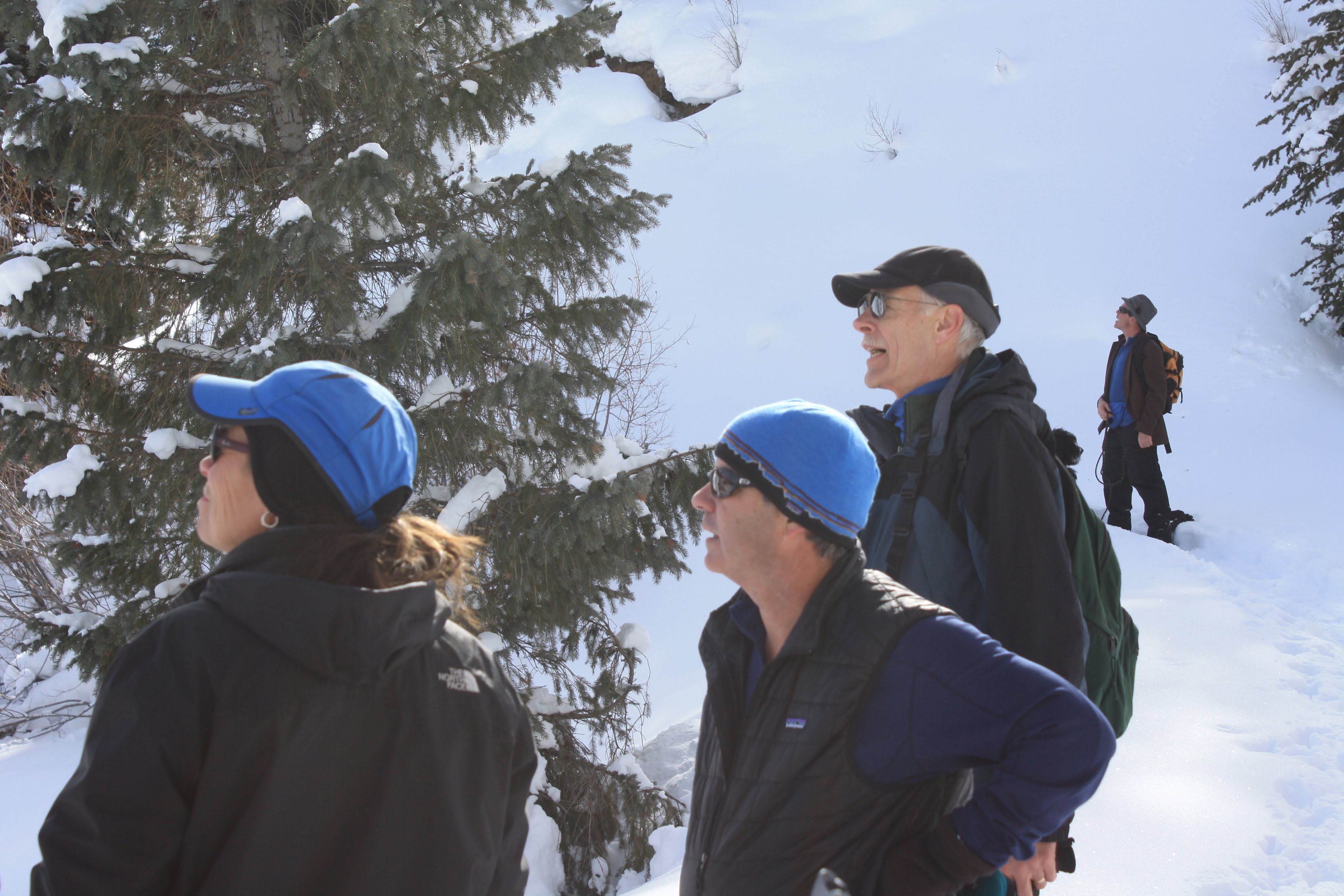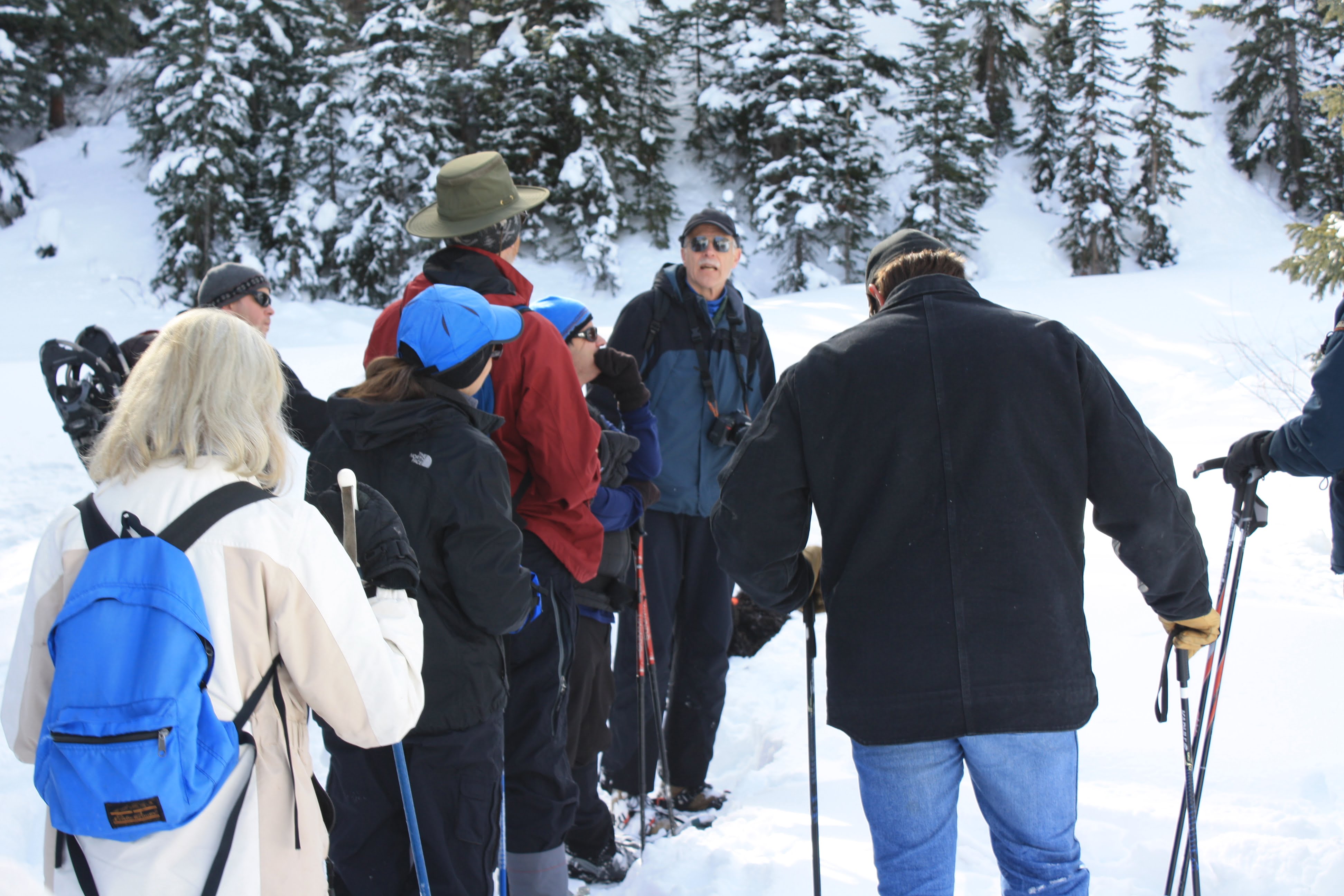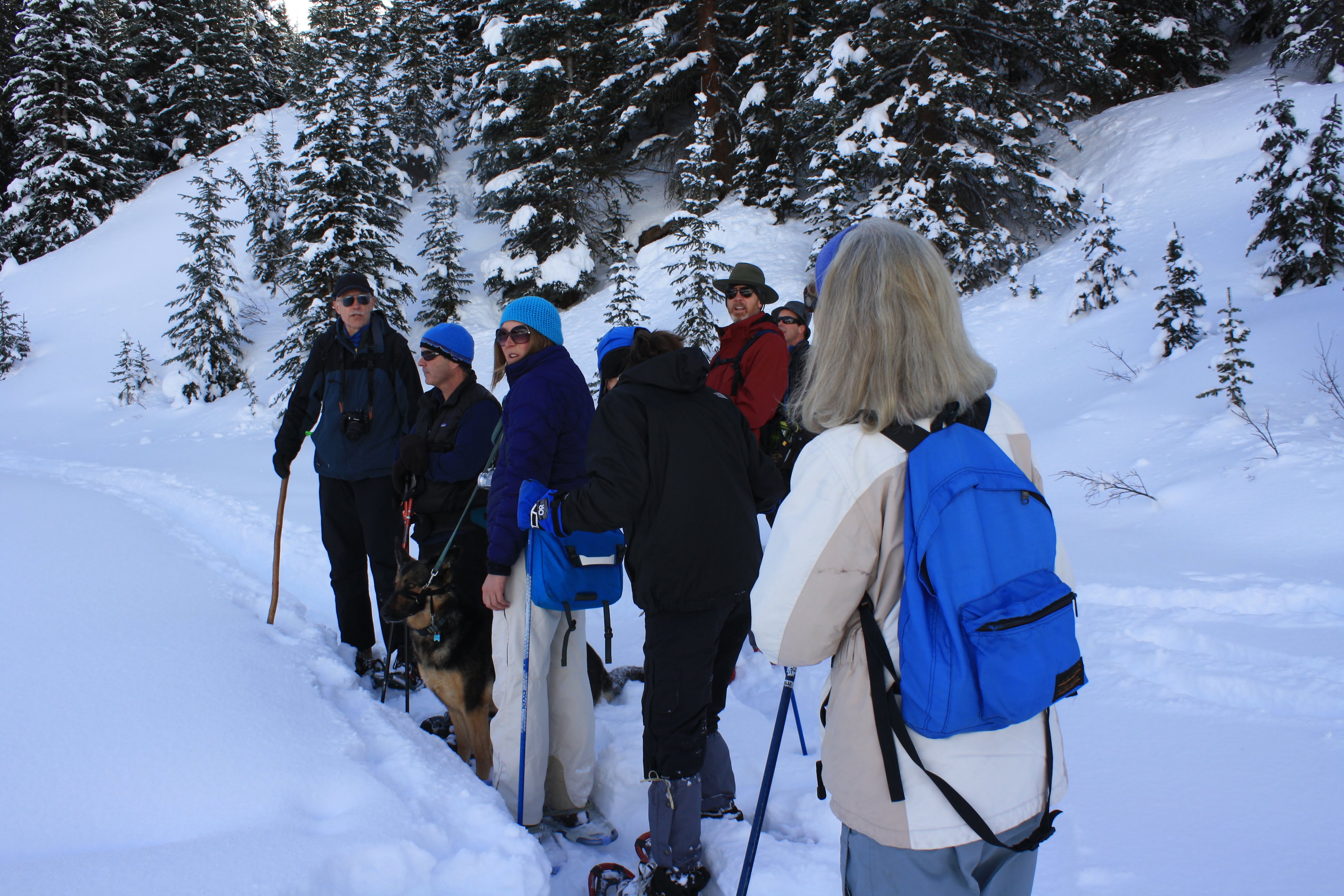 Over a dozen folks came out to the Visitor’s Center to enjoy breakfast provided by Artisan Bakery and Exotic Earth Coffee Roasters. Then we carpooled over the pass to ski and snowshoe along County Road 31. The road was covered in deep, yet manageable snow!